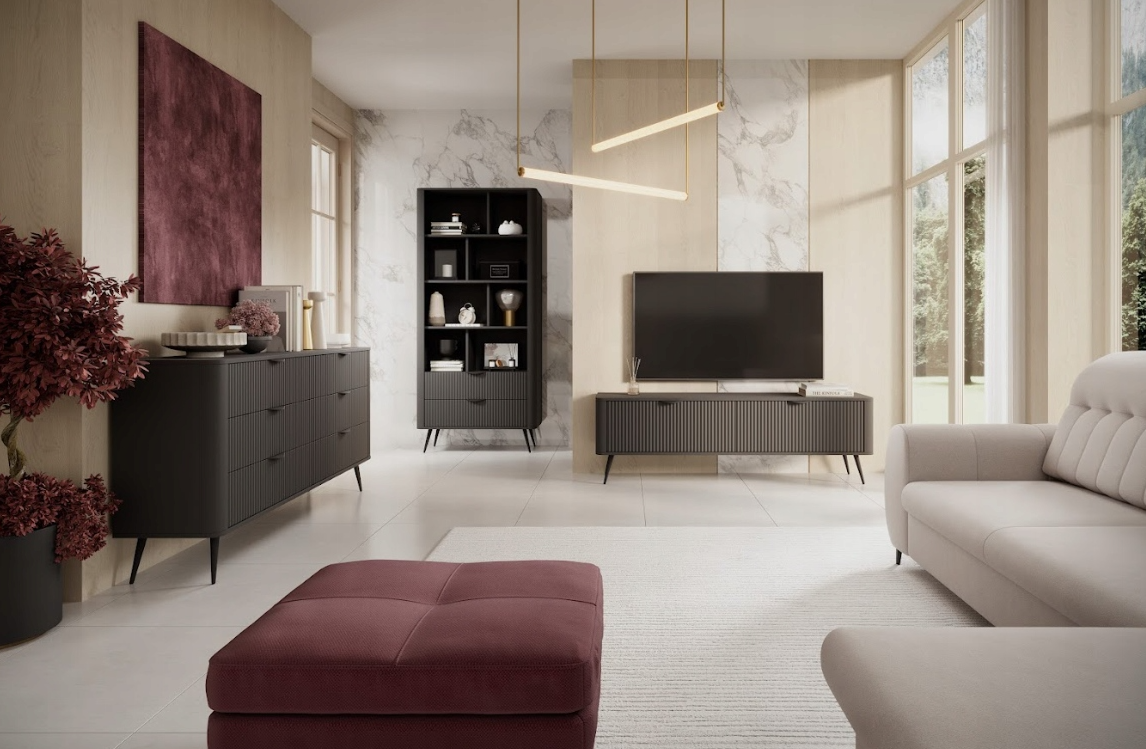 Czarna Meblościanka do salonu wysokie nóżki LATINO LS
