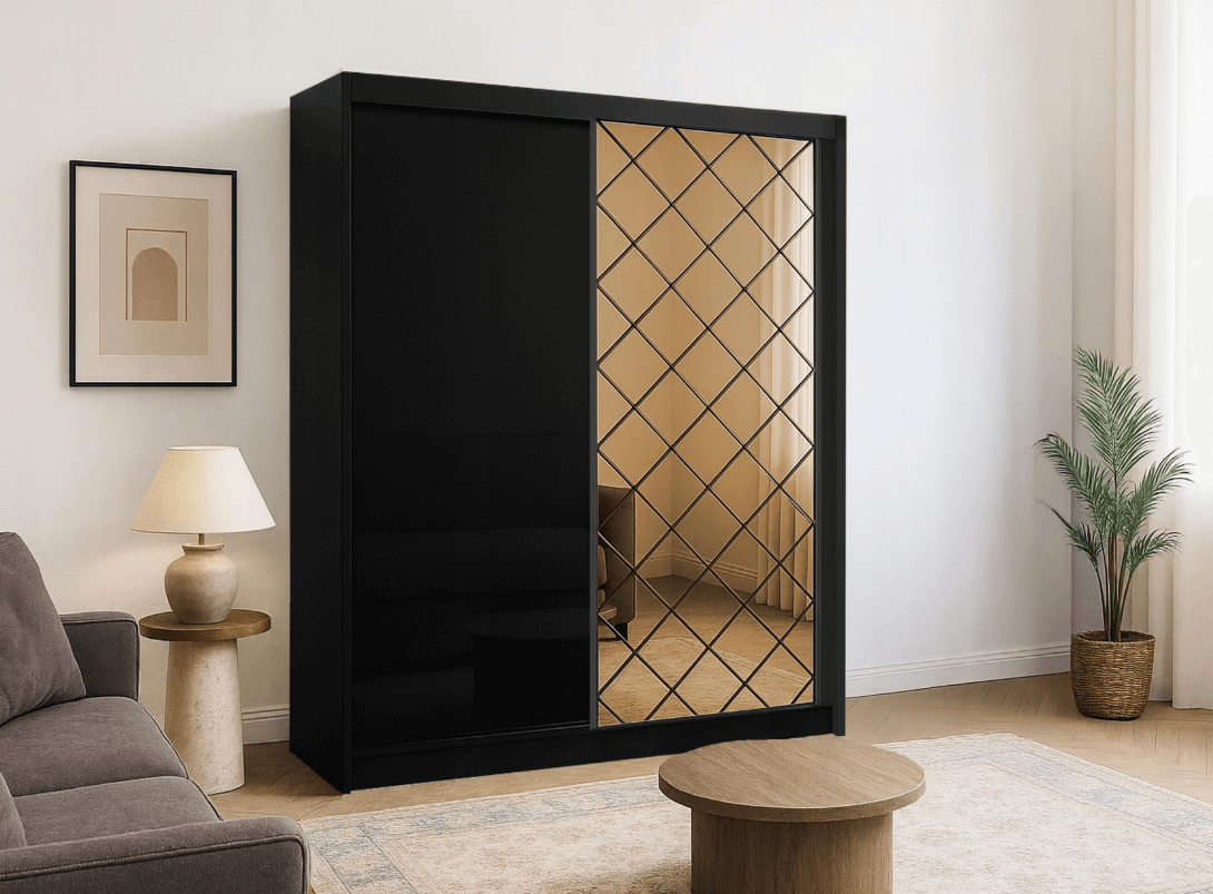 Czarny Połysk Szafa Przesuwna Garderoba 200cm KADO AR