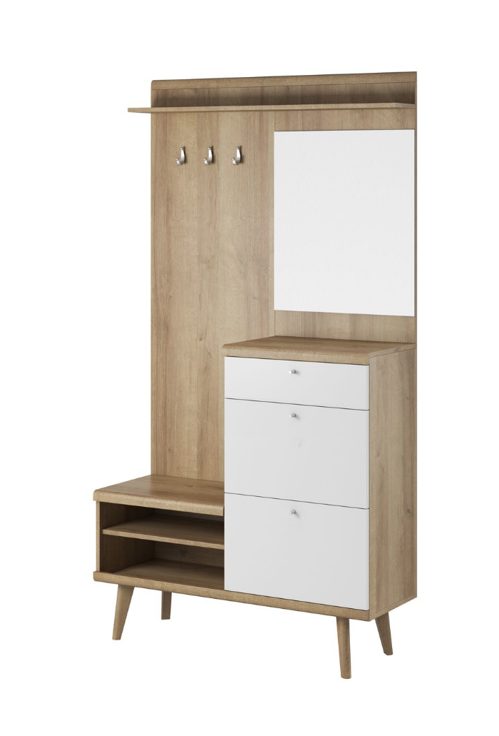 Garderoba Przedpokój 110cm Dąb Riviera / Biel Na Nóżkach PREMIO ps