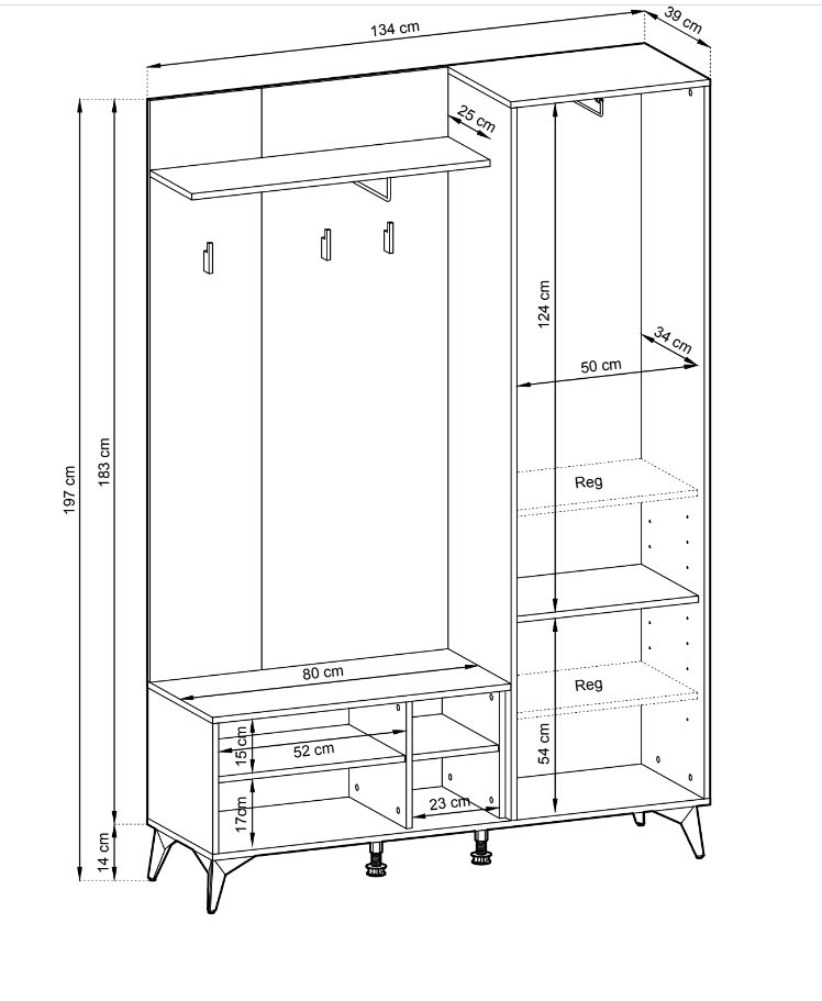 Garderoba Przedpokój 134cm Dąb Evoke DIADEM ps