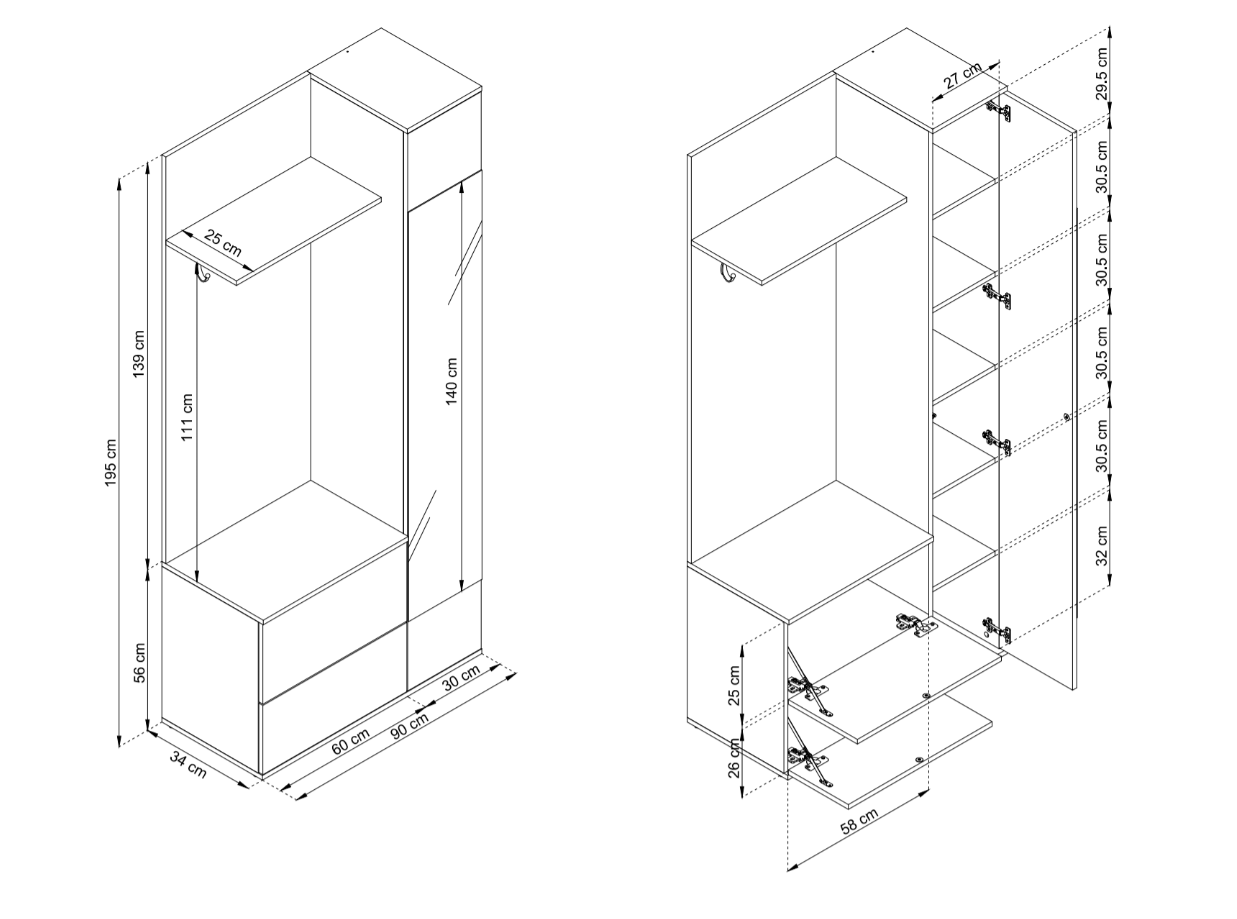 Wymiary 34 × 90 × 195 cm