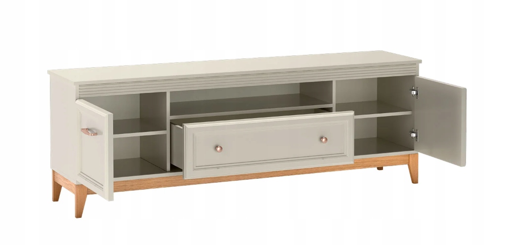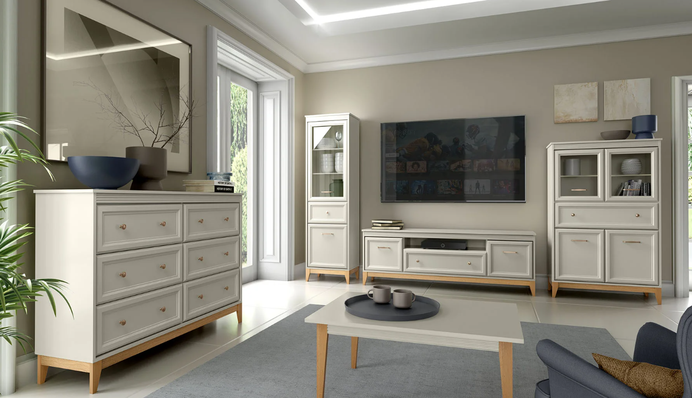 🔹Dekoracyjny minimalizm – delikatne zdobienia, subtelne frezy i smukłe uchwyty podkreślają charakter mebli bez przesady.