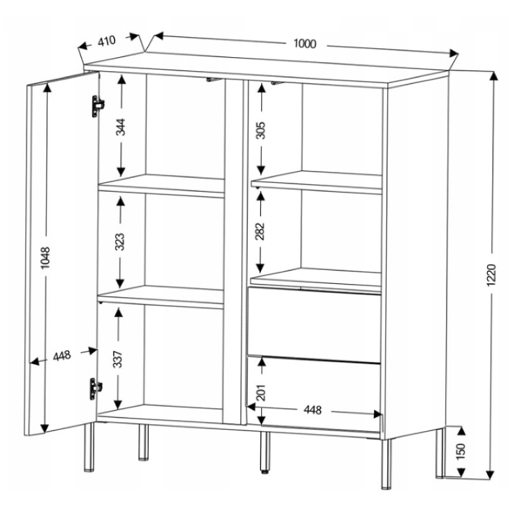 Komoda 2- Drzwiowa z Szufladami 2D2SZ Dąb Odwieczny / Czarny 100 cm ZUZIA JR – 2 Kolory