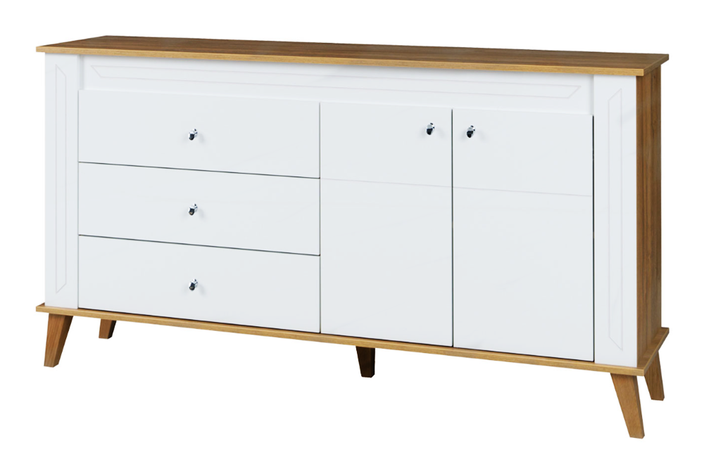 Komoda 2- Drzwiowa z Szufladami 2D3SZ 164 cm Dąb Grand / Biały Połysk SONN 07 MŁ – 2 Kolory