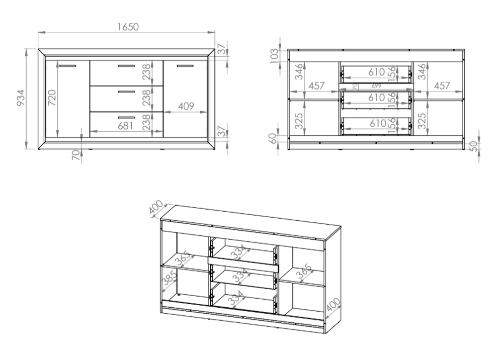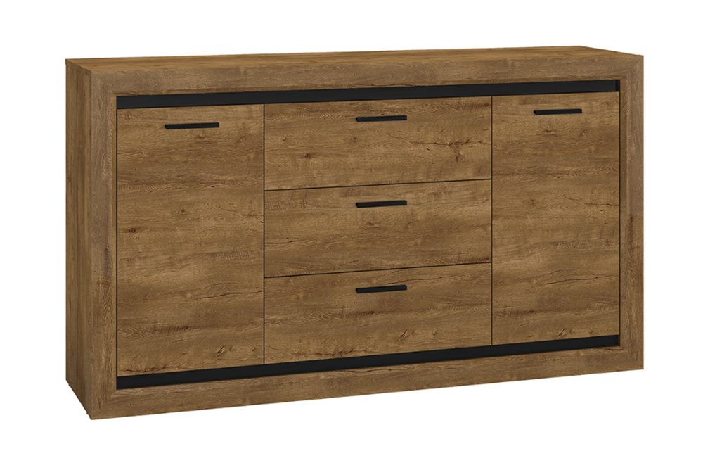 / Komoda 2- Drzwiowa z Szufladami 2D3SZ 165 cm Dąb Lefkas + Czarny BALTA ML