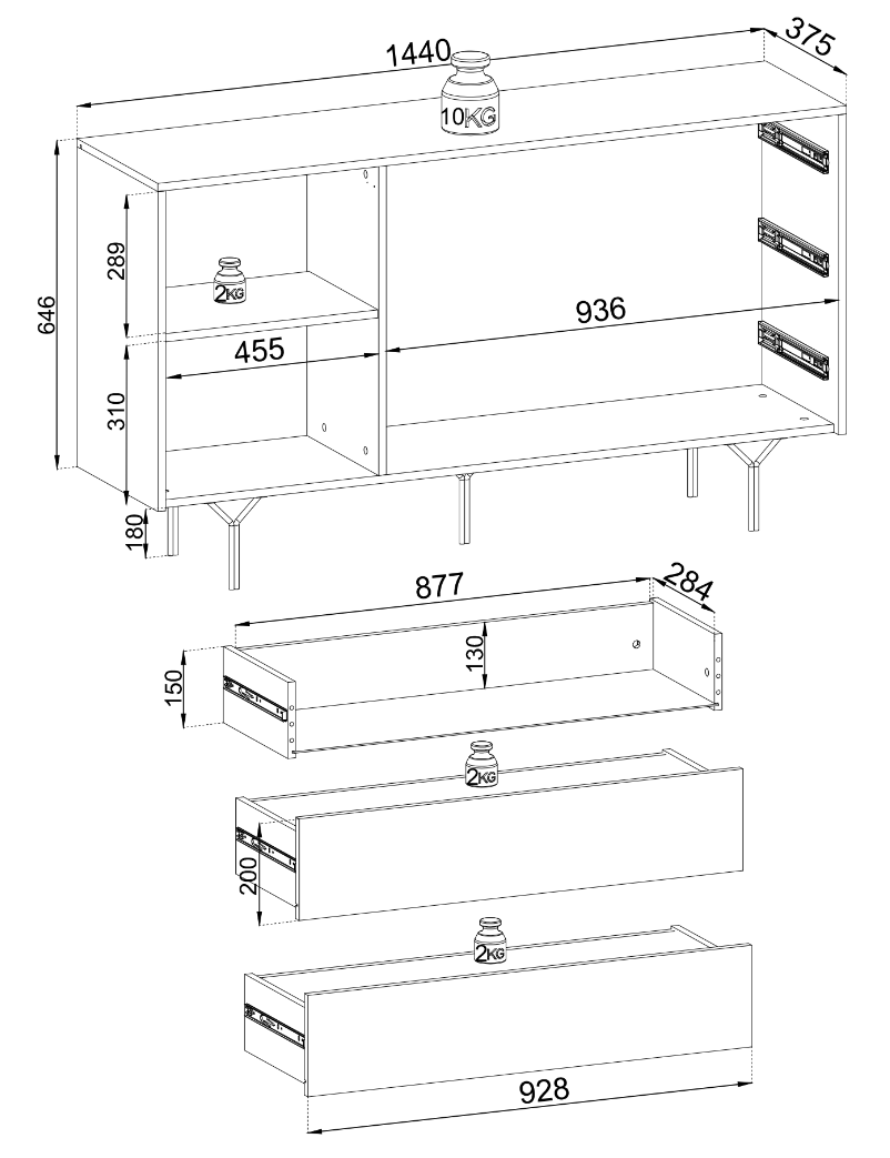 Wymiary 38 × 144 × 83 cm