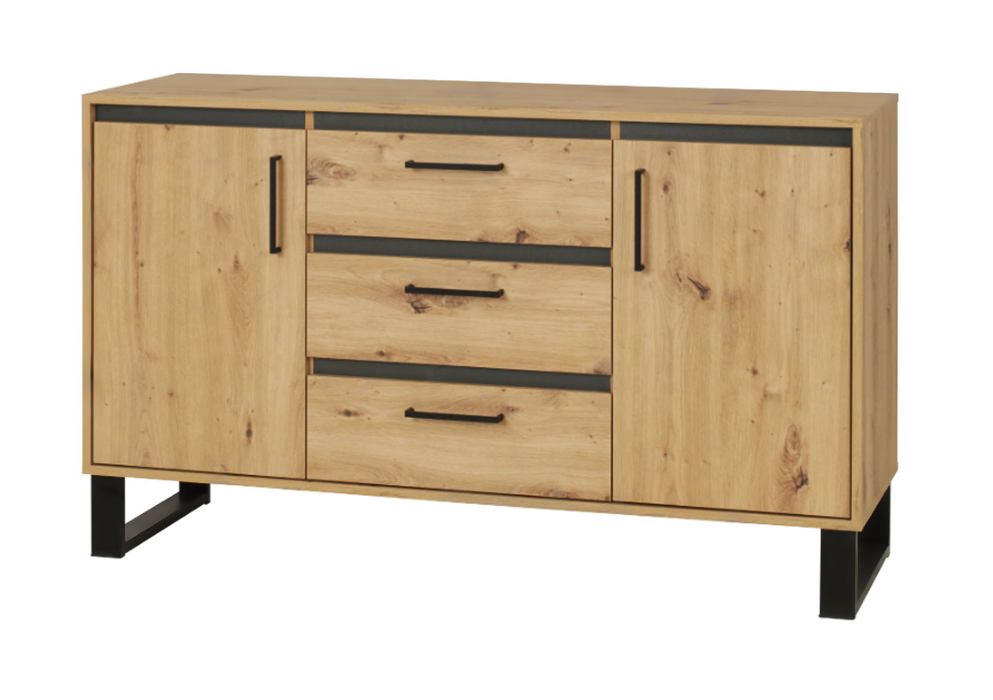 Komoda Loftowa 2- Drzwiowa z Szufladami 2D3SZ 140 cm Dąb Artisan NEWI 9 MŁ – 2 Kolory