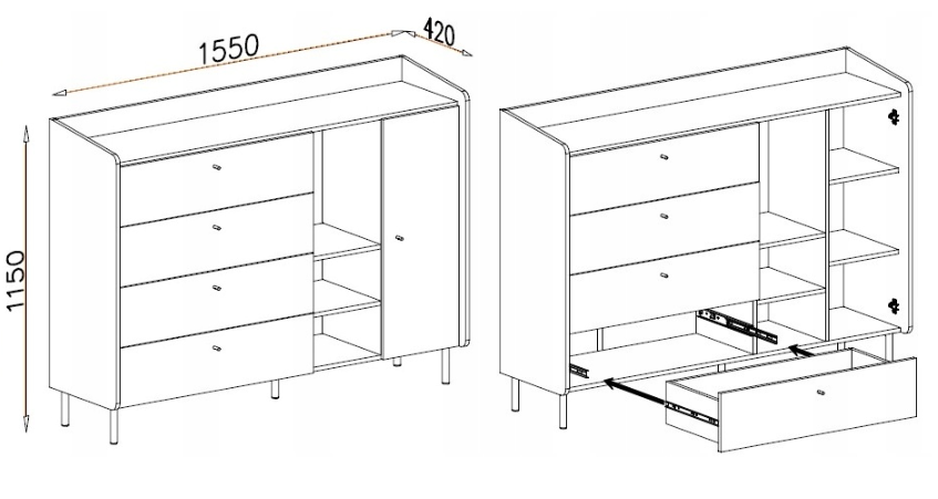 Komoda Młodzieżowa 1D3SZ Piaskowy Beż / Dąb Olejowany 155 cm ALI MB – 2 Kolory