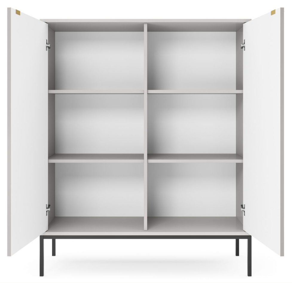 Meble z kolekcji NOVUM odznaczają się wyjątkowo nowoczesnym designem. Bryły meblowe posiadają uchwyty w kolorze złota co sprawia iż wnętrze staje się bardzo eleganckie.Podstawę stanowią złote lub czarne metalowe nogi
