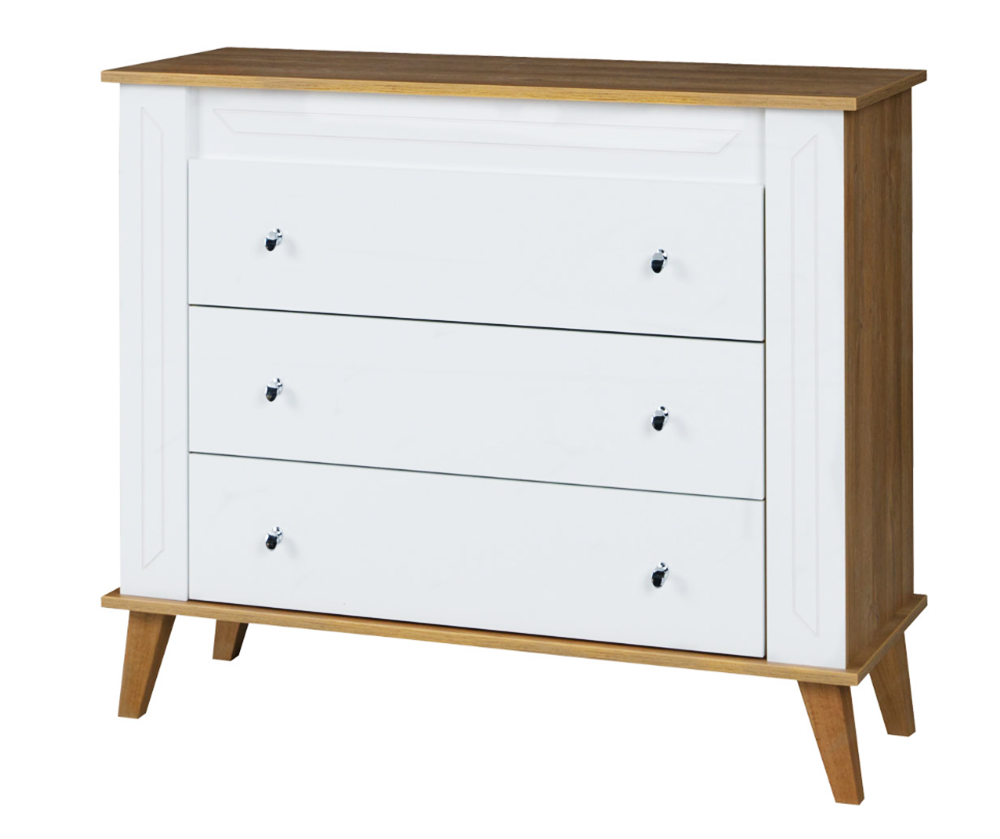Komoda z Szufladami 3SZ 104 cm Dąb Grand / Biały Połysk SONN 10 MŁ – 2 Kolory