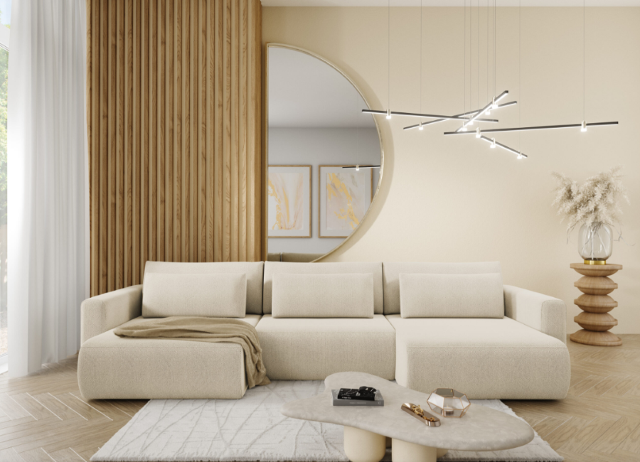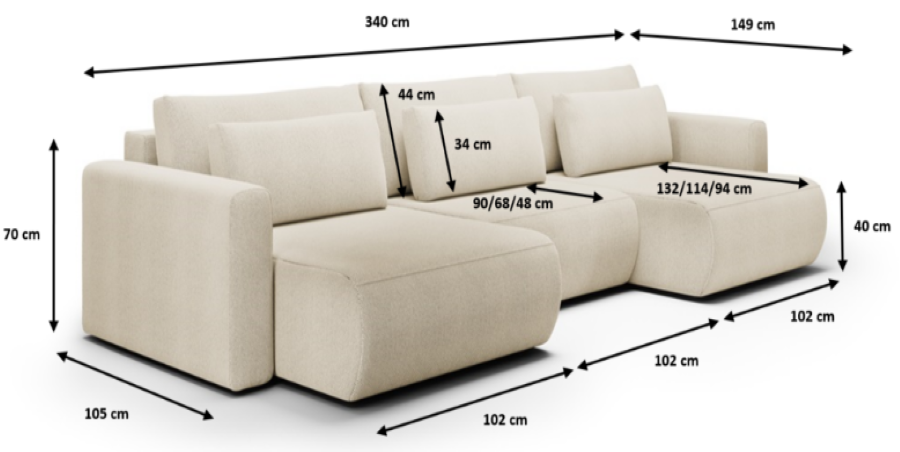 Kremowy Narożnik z Funkcją Spania 340×149 cm CIRI U IT – Różne Kolory