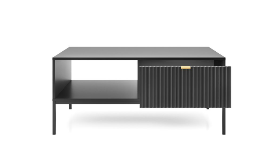 Ława z Szufladą Czarny Mat 104cm Ryflowane Fronty NOVUM ps
