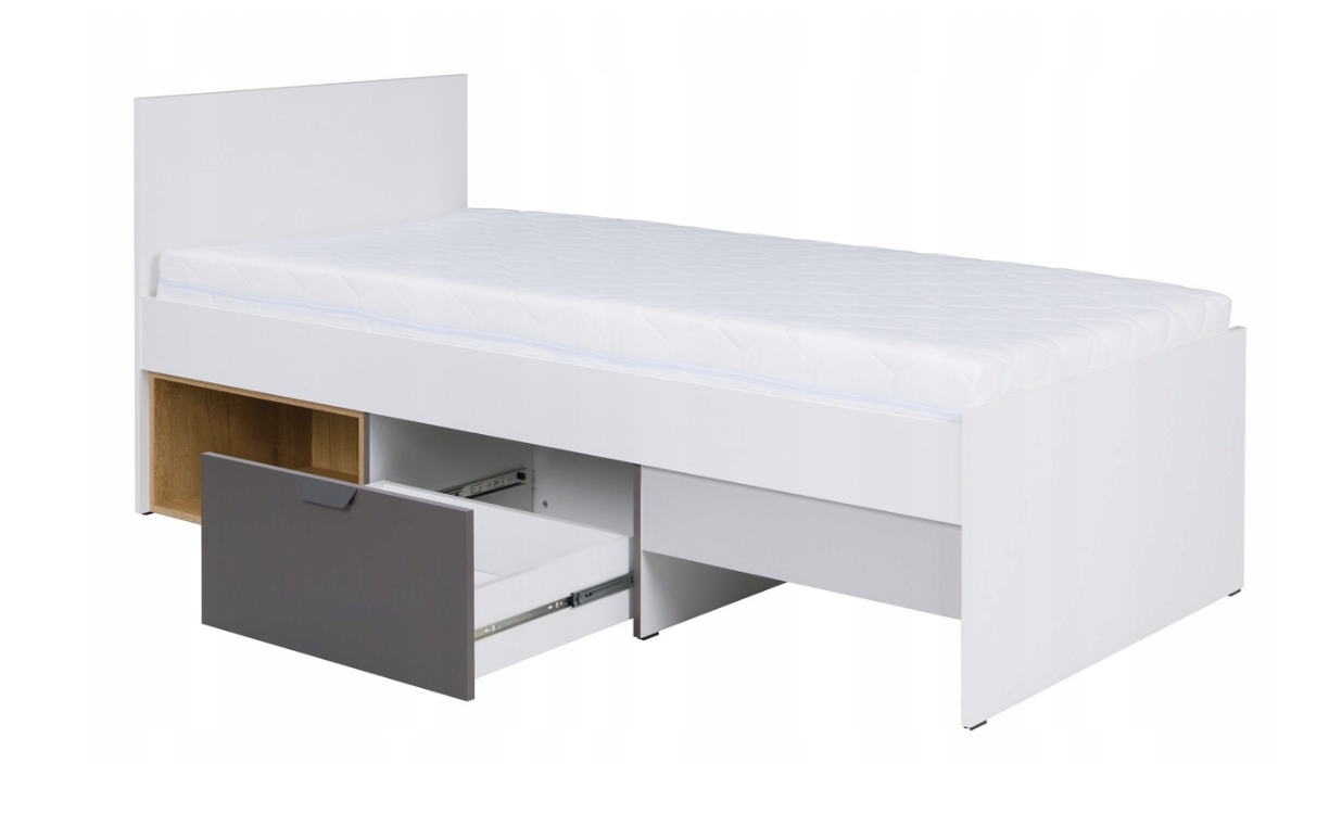 Łóżko Młodzieżowe Pojedyncze 90×200 cm Biały / Grafit / Szary / Dąb Lefkas JOKI 15 JR