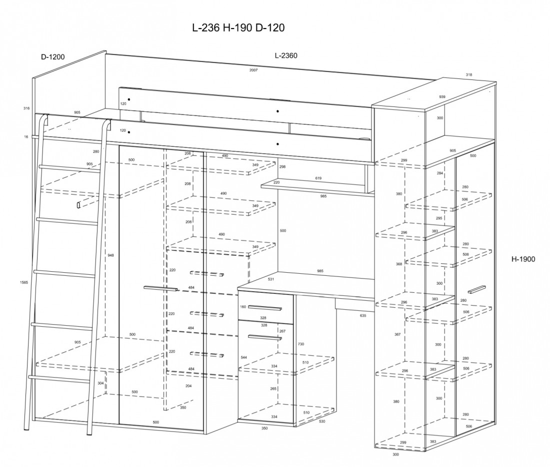 • głębokość: 94 cm (szafa) / 120 cm (schodki)