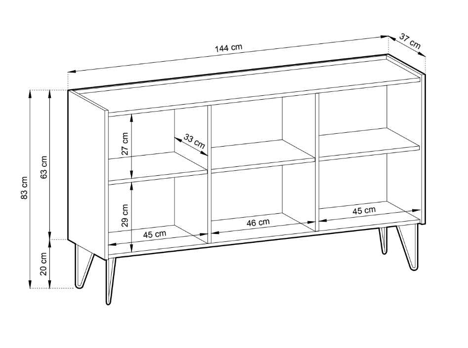 - KOMODA : szer: 144 cm / wys: 83 cm / gł: 37 cm