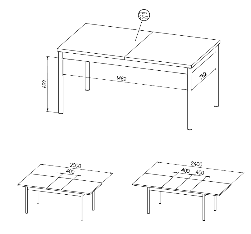 - stół – szer 160 do 240 x wys 77 x gł 90 cm