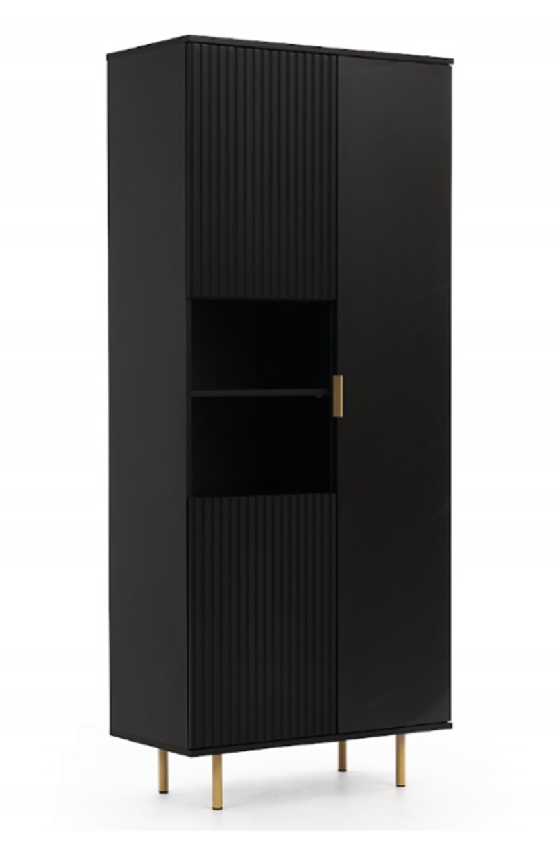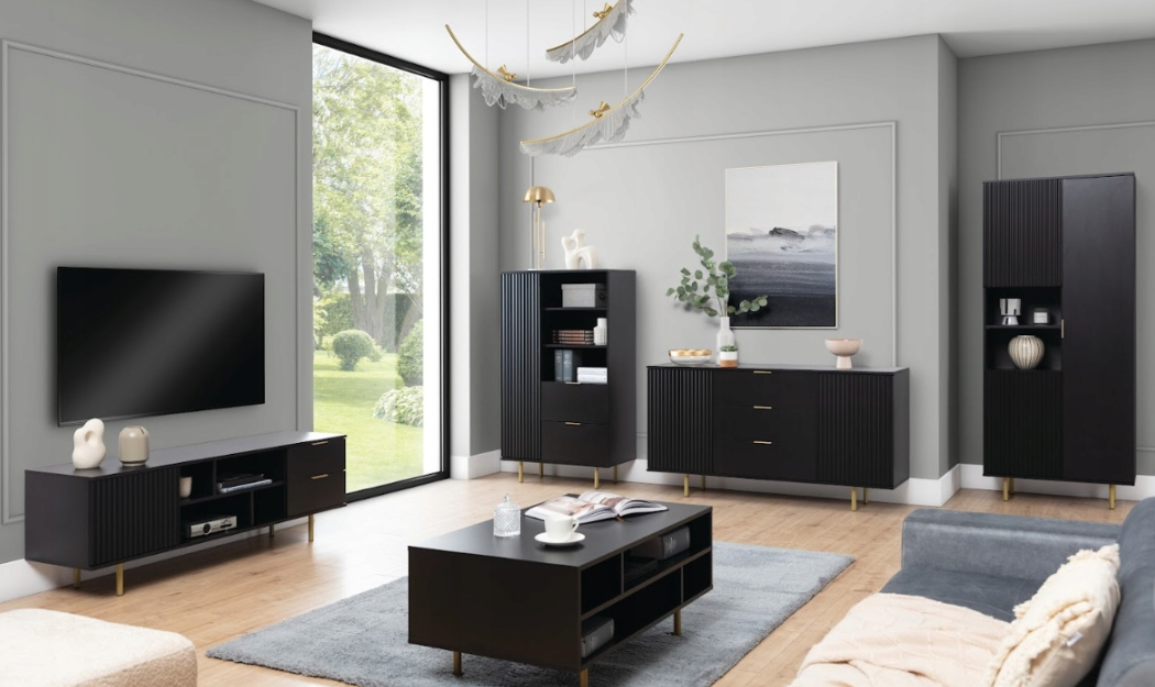 Meblościanka o niezwykłym charakterze, emanująca duchem nowoczesności połączonej z wyjątkową elegancją. To prawdziwe arcydzieło, które zachwyci każdego miłośnika nowatorskiego designu i estetyki.