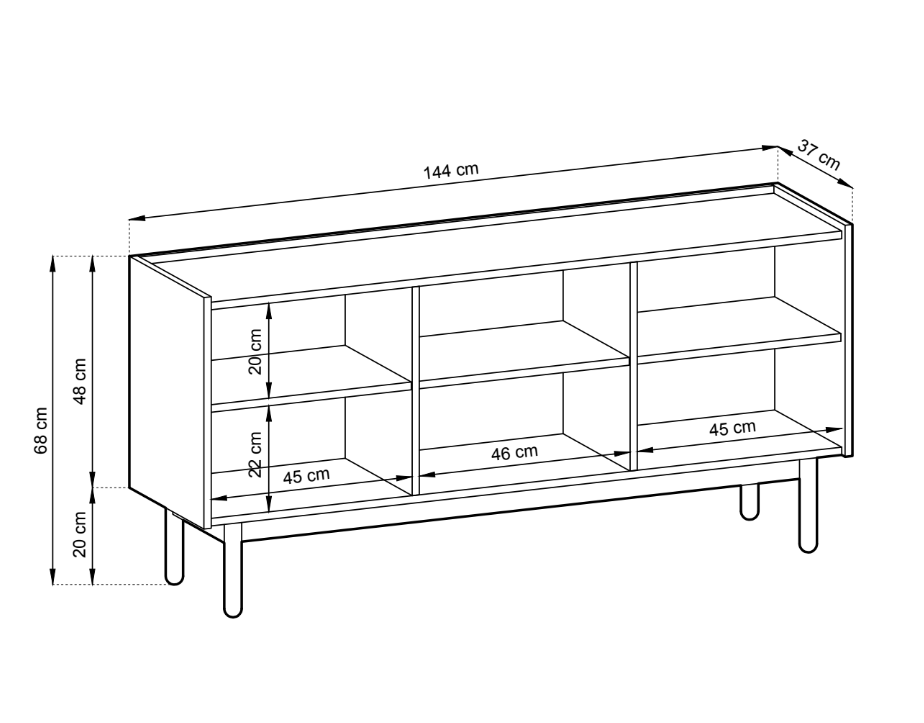 - Komoda: szer: 144 / wys 68 / gł. 37 cm