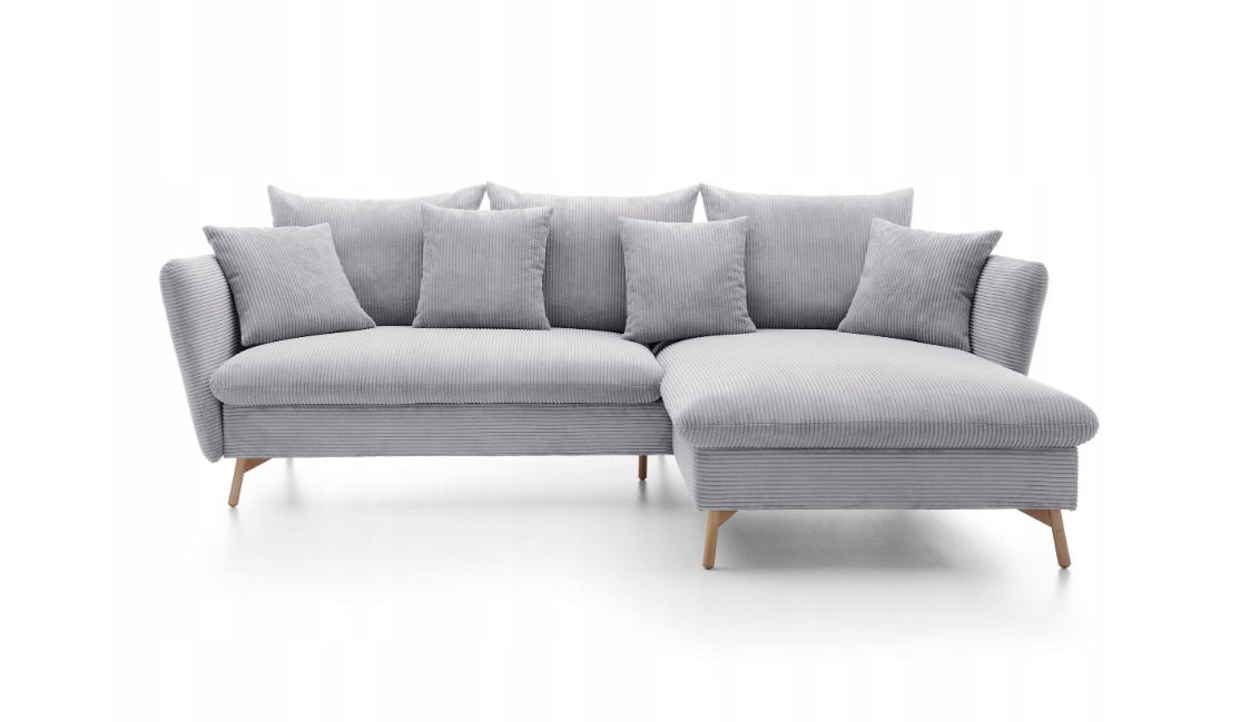 - Poduszki dekoracyjne: 49 cm x 70 cm oraz 40 cm x 40 cm, które zapewniają odpowiednie wsparcie dla pleców, głowy i nóg, sprawiając, że każdy moment spędzony na narożniku będzie przyjemnością.
