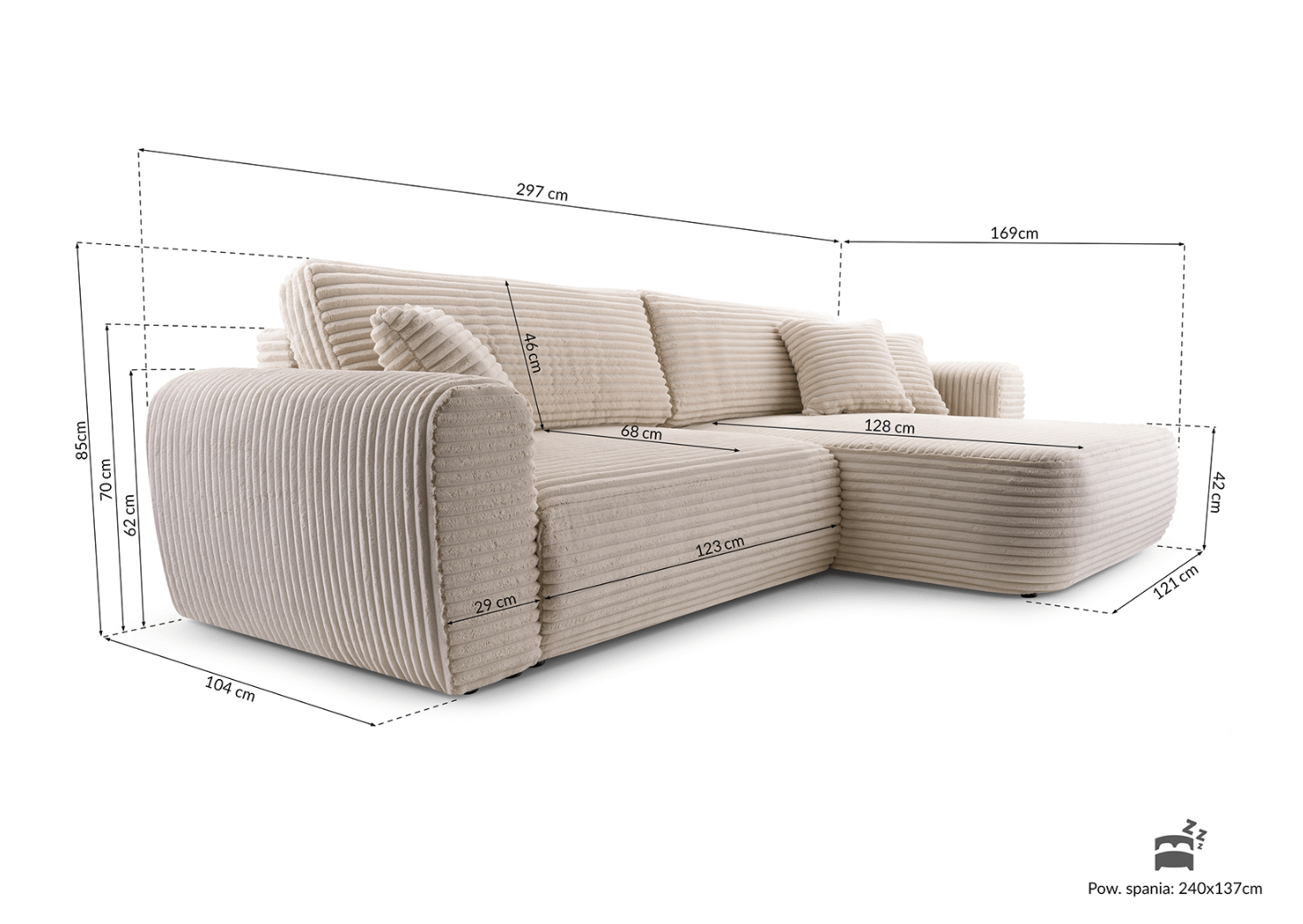 | Wymiary | 169 × 297 × 85 cm |