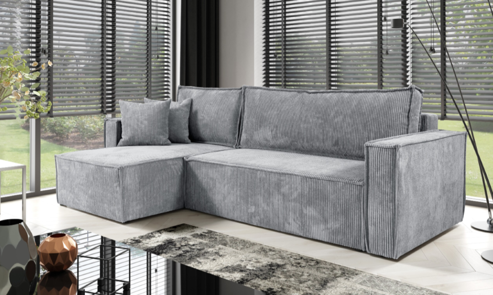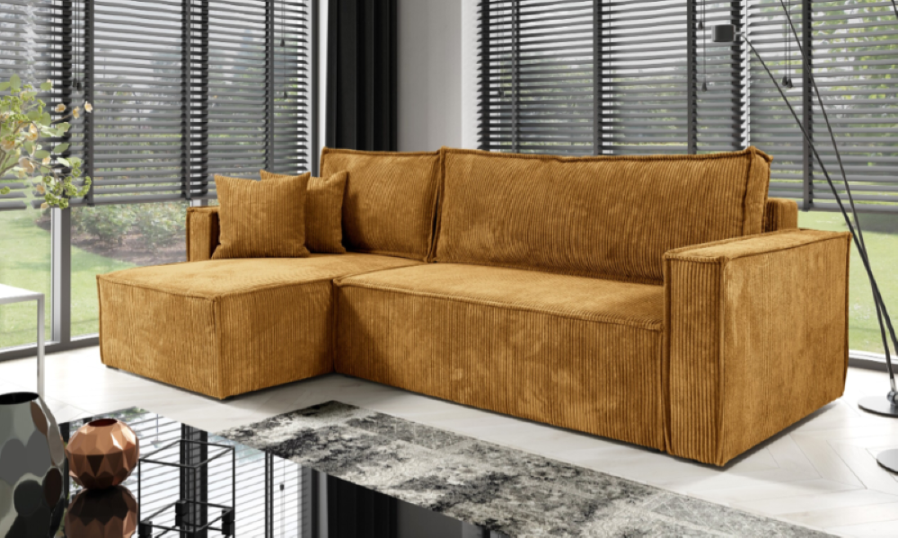 - Meble wykonane są z ultramiękkiego sztruksu w grube prążki. Kolorystyka została dopasowana do najmodniejszych kolorów z kolekcji kronos, co pozwala tworzyć niezwykłe kombinacje.