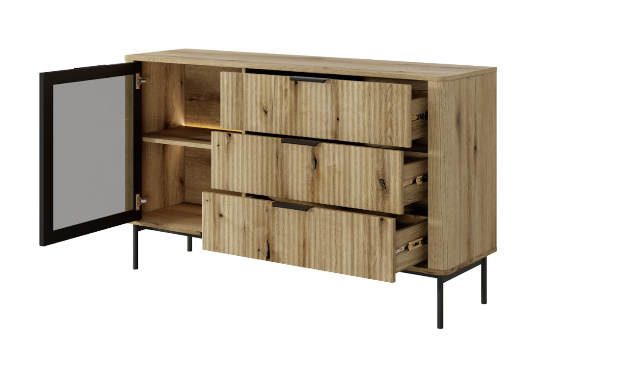 Nowoczesna Komoda Ryflowana 1- Drzwiowa z Szufladami 1D3SZ 138 cm Evoke WNI LS + Led