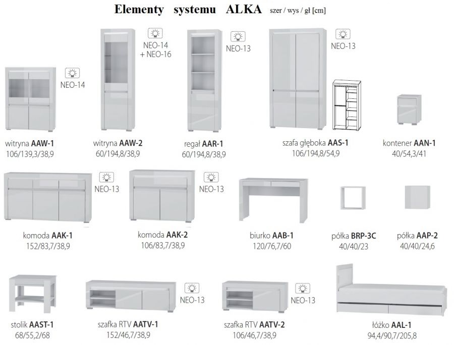 Nowoczesne Meble Młodzieżowe Biały połysk ALKA 5
