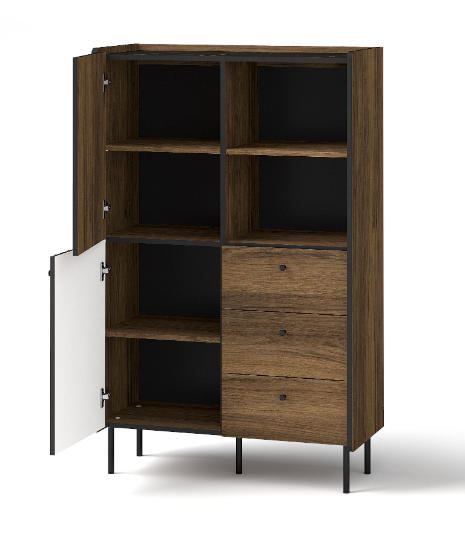 Nowoczesny Regał Mały 2- Drzwiowy z Szufladami 2D3SZ Orzech 88 cm PRESTIM DL