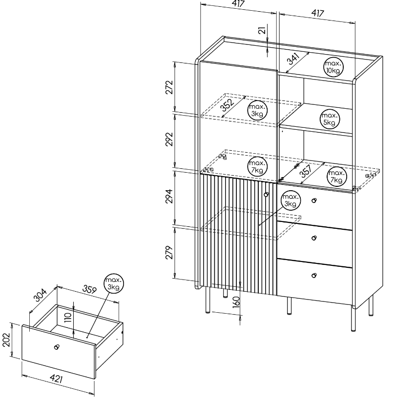 | Wymiary | 40 × 88,2 × 140,1 cm |
