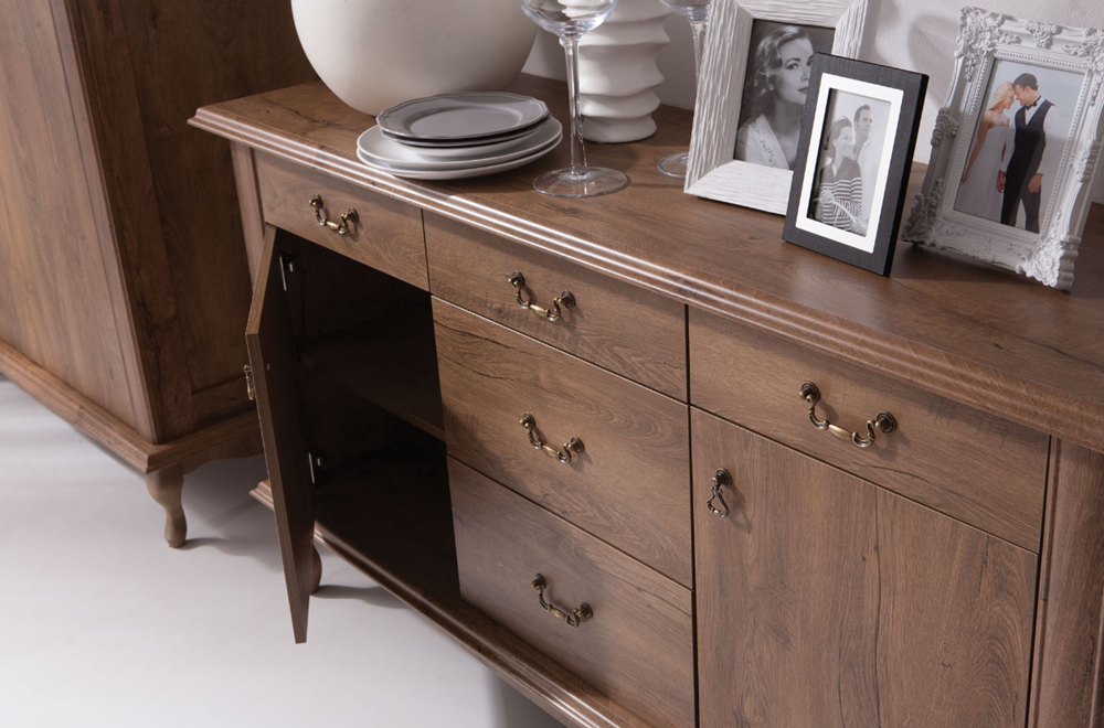 Meble w kolorze dąb lefkas przedstawione są na zdjęciu w galerii poniżej