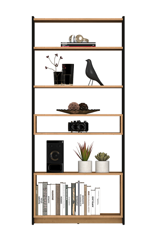 Regał Otwarty Szeroki 80 cm Dąb Artisan + Czarny TRESI 04 ML
