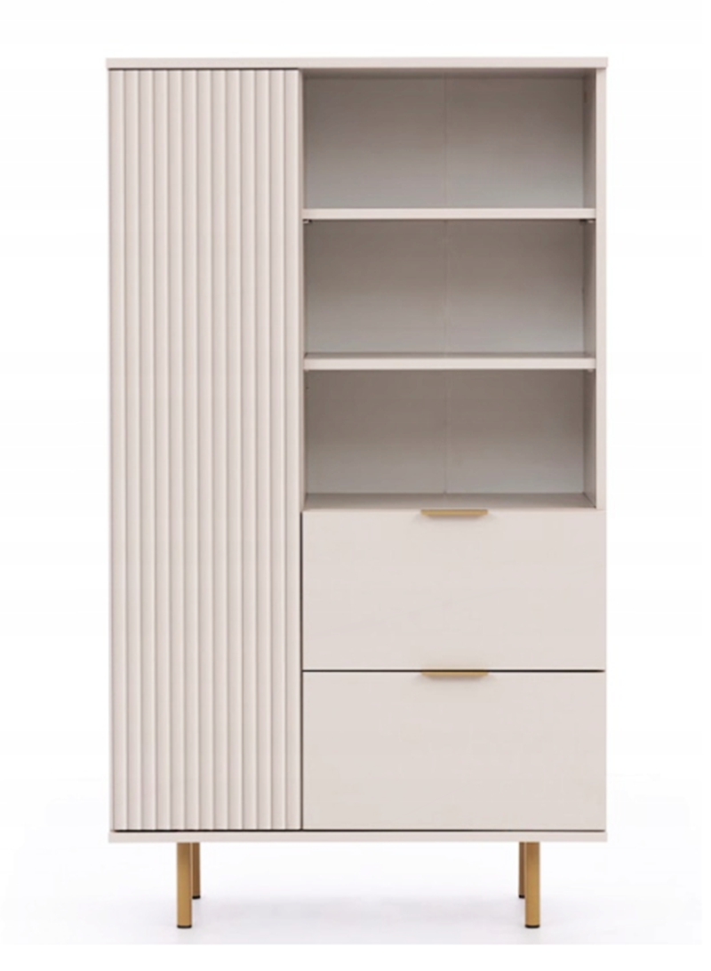 Regał Ryflowany 1- Drzwiowy z Szufladami 1D2SZ 80 cm Beżowy NUMI GB – 2 Kolory