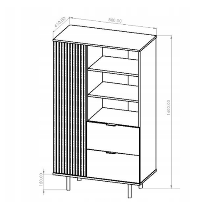 Przedmiotem sprzedaży jest Regał Ryflowany 1- Drzwiowy z Szufladami 1D2SZ NUMI