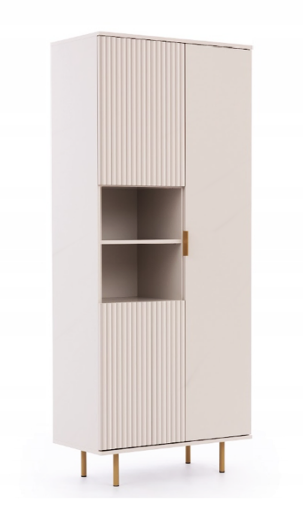Regał Ryflowany 3- Drzwiowy 3D 80 cm Beżowy NUMI GB – 2 Kolory