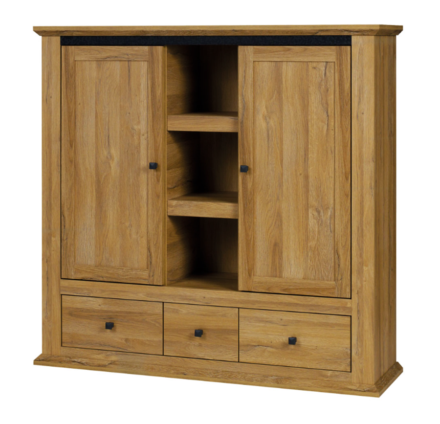 Regał Zamknięty 2- Drzwiowy z Szufladami 2D3SZ 135 cm Dąb Grand MESTO 07 MŁ – 3 Kolory