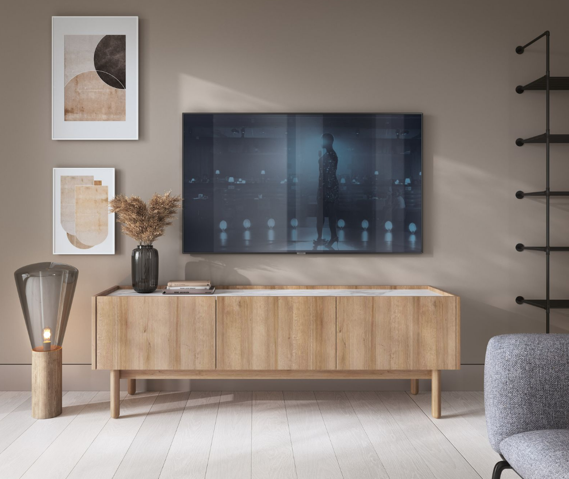 Stolik Rtv 144cm Dąb Riviera Blat Biel Marmur BOHO ps