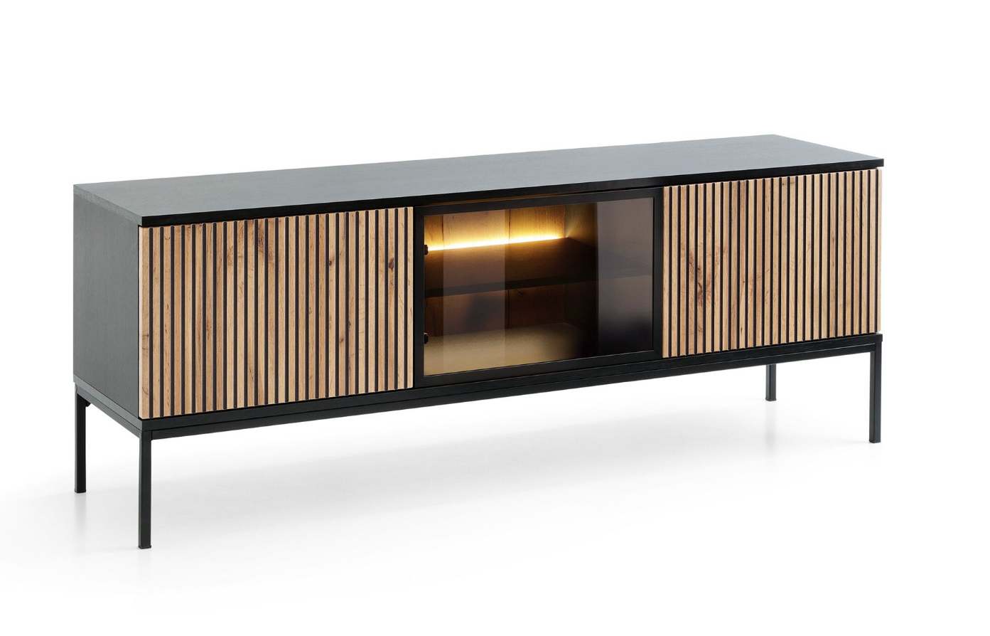 Stolik Rtv Czarny Grafit / Dąb Wotan + Oświetlenie Led 154cm SELVIO ps