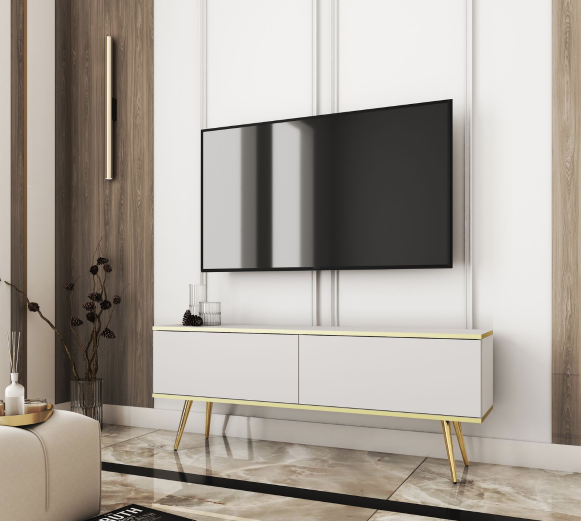 Stolik Rtv Na Nóżkach Biały mat / Złota Okleina 135cm OLO ps