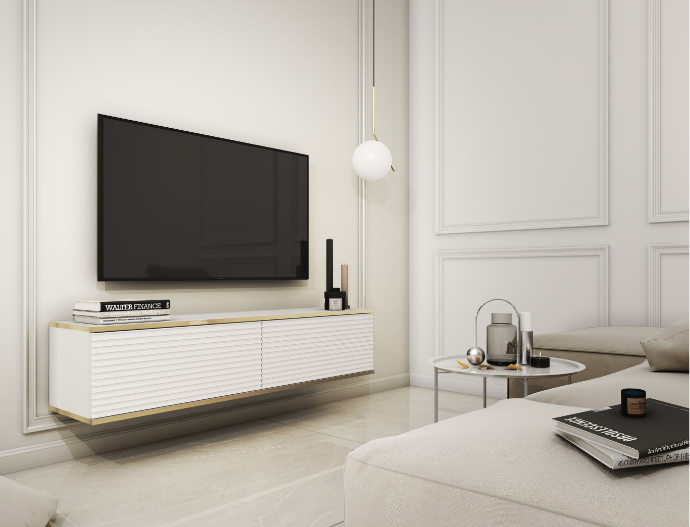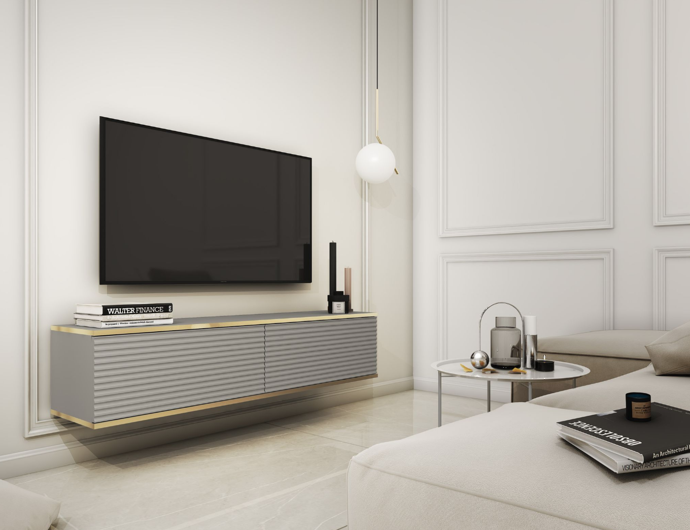Stolik Rtv Wiasząca Ryflowana Czarna / Złota Okleina 135cm OLO ps