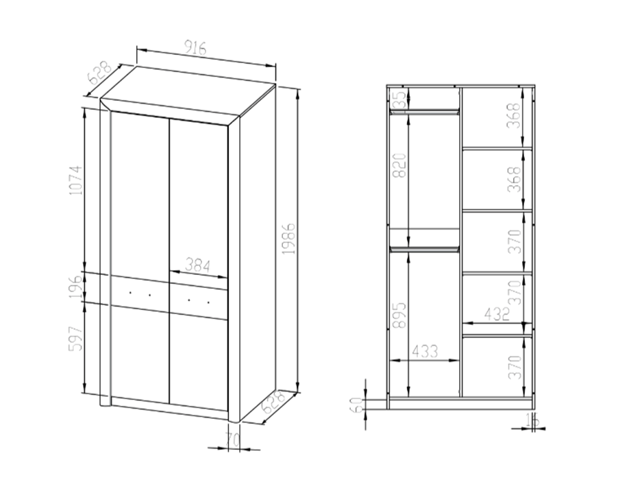/ Szafa 2- Drzwiowa 2D 92 cm Dąb Sonoma KASTIEL ML