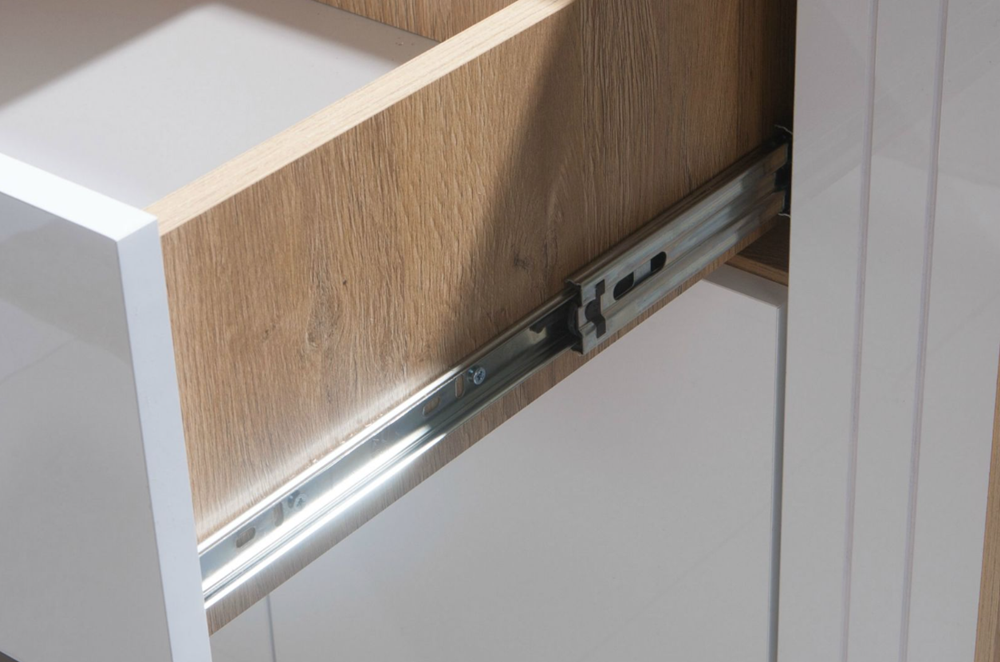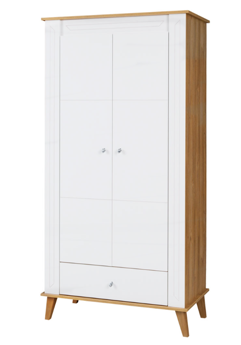 Nowoczesna szafa 2- drzwiowa z szufladą w stylu skandynawskim. Szafa została stworzona w dwóch wersjach kolorystycznych dąb grand oraz dąb grand + biały połysk. Dzięki możliwości wyboru koloru możemy stworzyć swój wymarzony zestaw, który nada niepowtarzalnego wyglądu naszego wnętrza.
