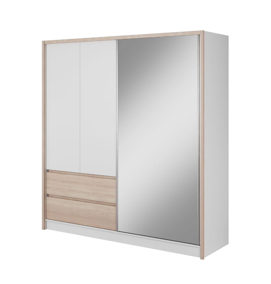 Szafa 204cm Biała Lustro Szuflady SIERRA ps