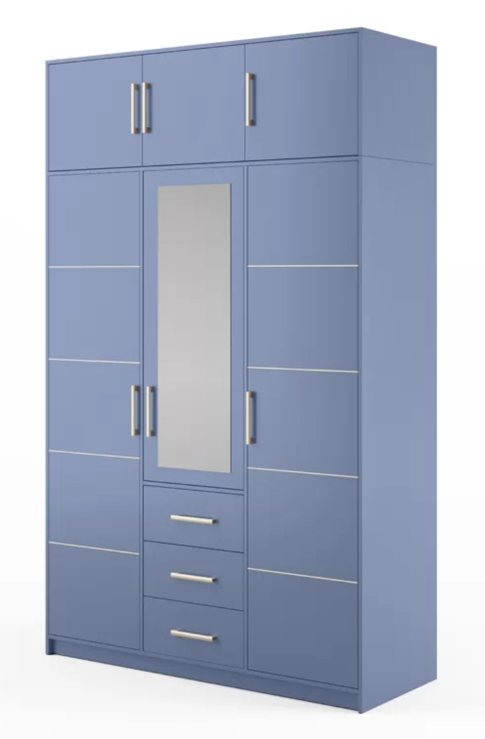 Szafa 3 Drzwiowa Niebieska z Nadstawką Lustrem D3 147cm DALI ST