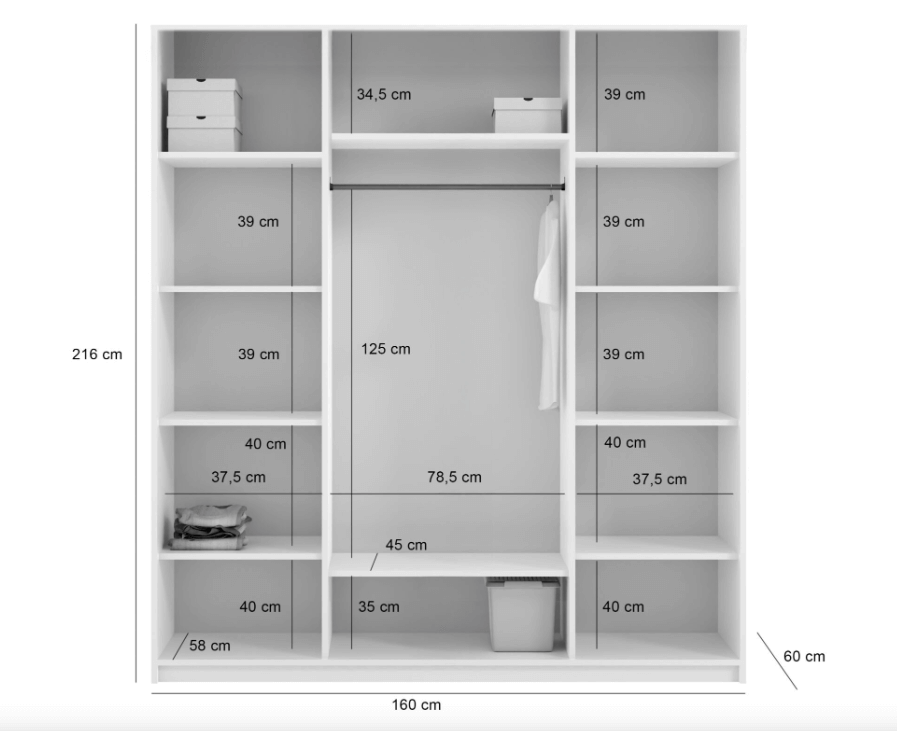 | Wymiary | 60 × 160 × 216 cm |