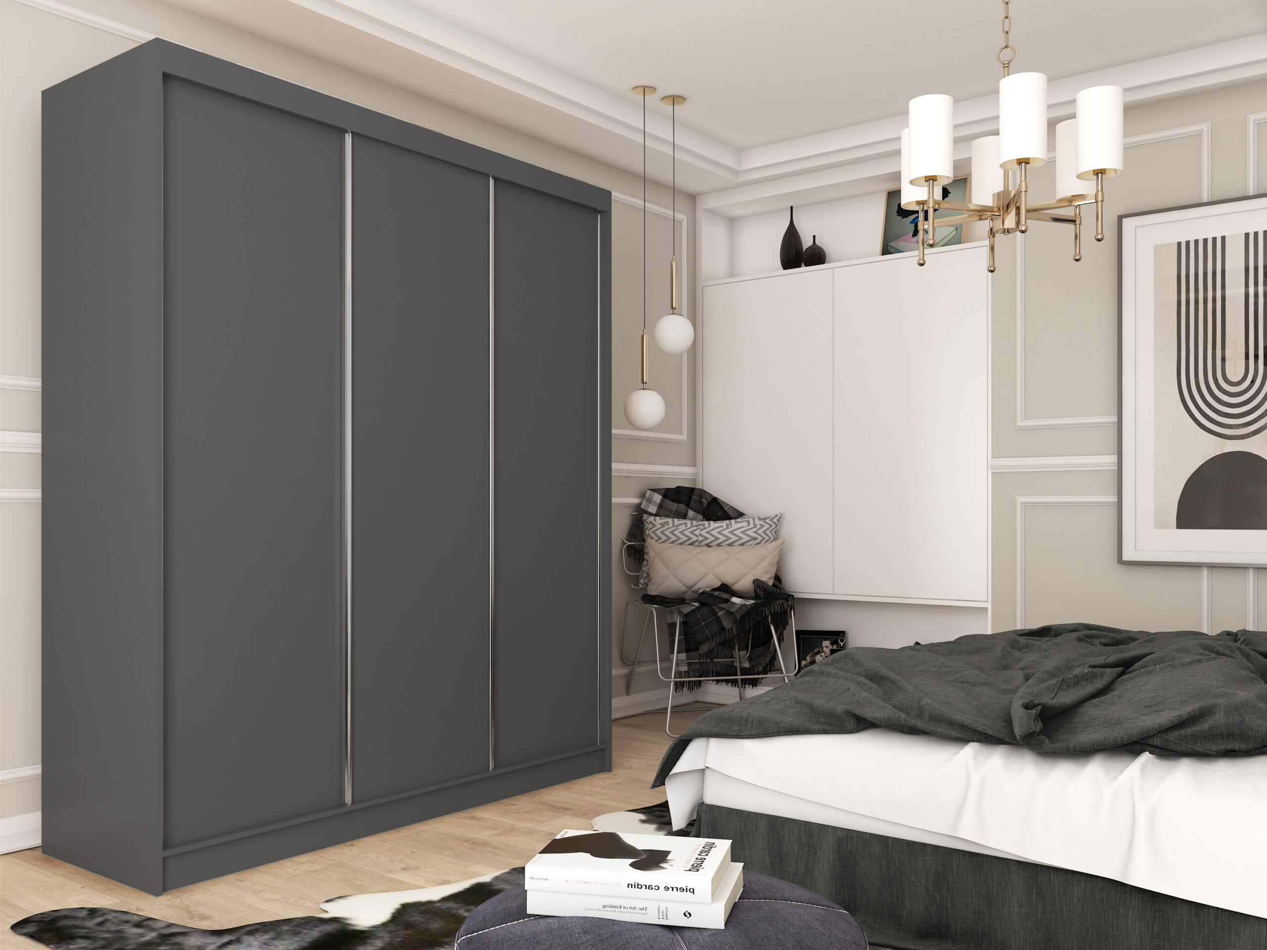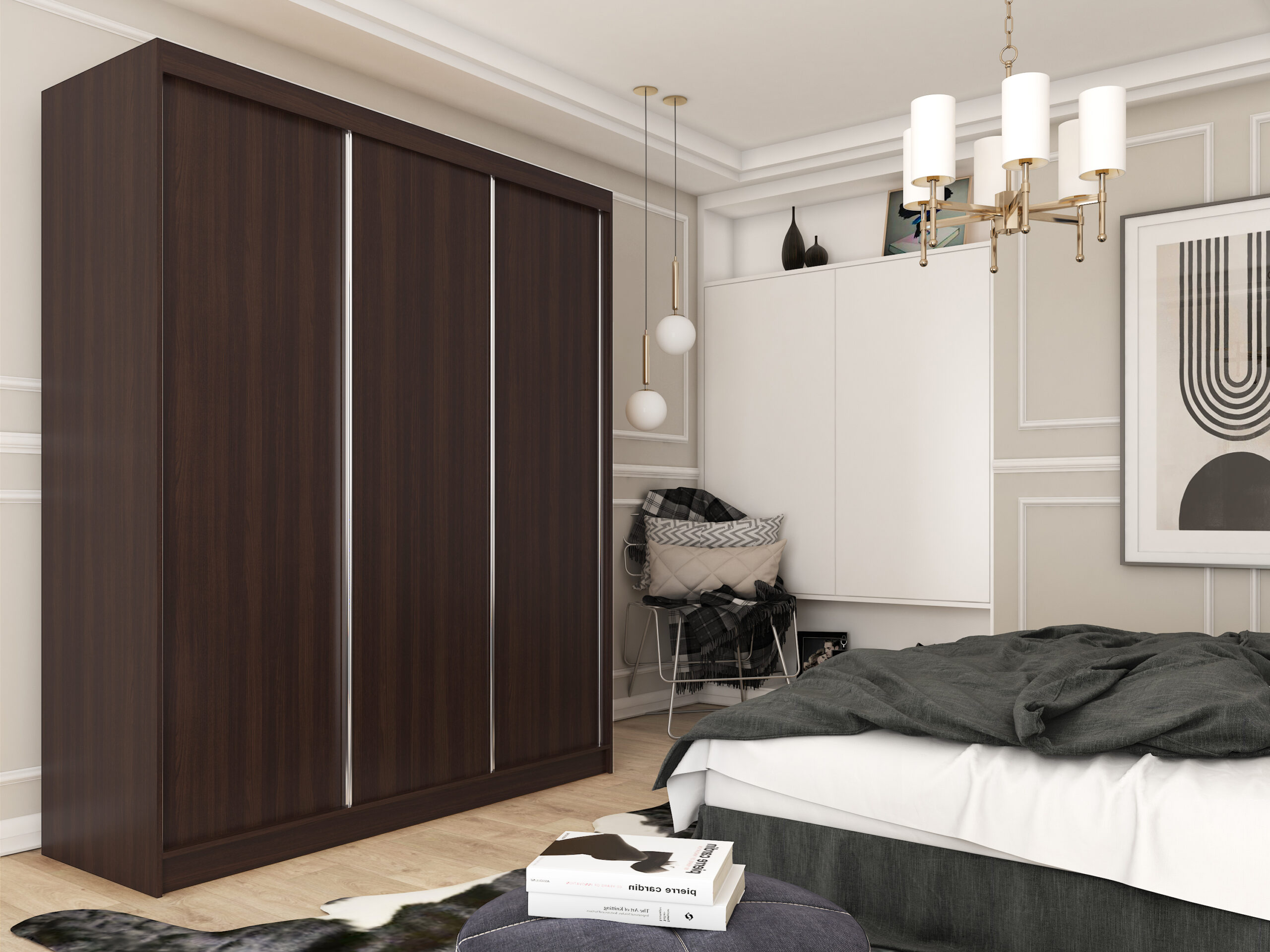 - SYSTEM JEZDNY SZAFY – LAGUNA – PROWADNICE ALUMINIOWE, KÓŁKA ŁOŻYSKOWANE I GUMOWANE. BRZEGI FRONTÓW NA CAŁEJ WYSOKOŚCI ZAKOŃCZONE SĄ RĄCZKAMI ALUMINIOWYMI.