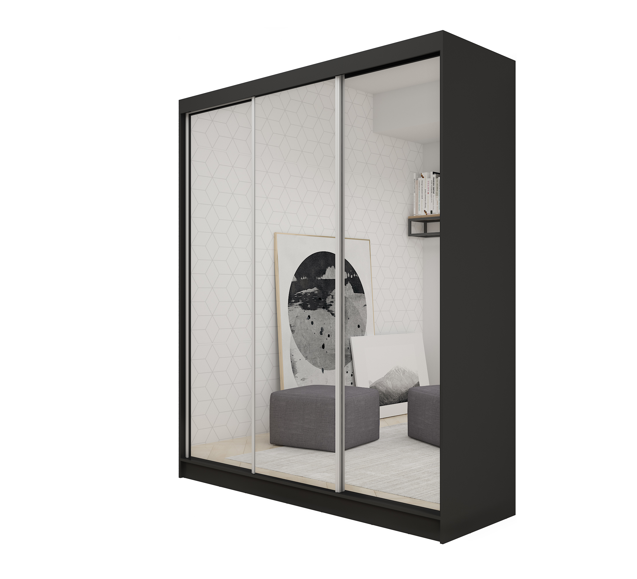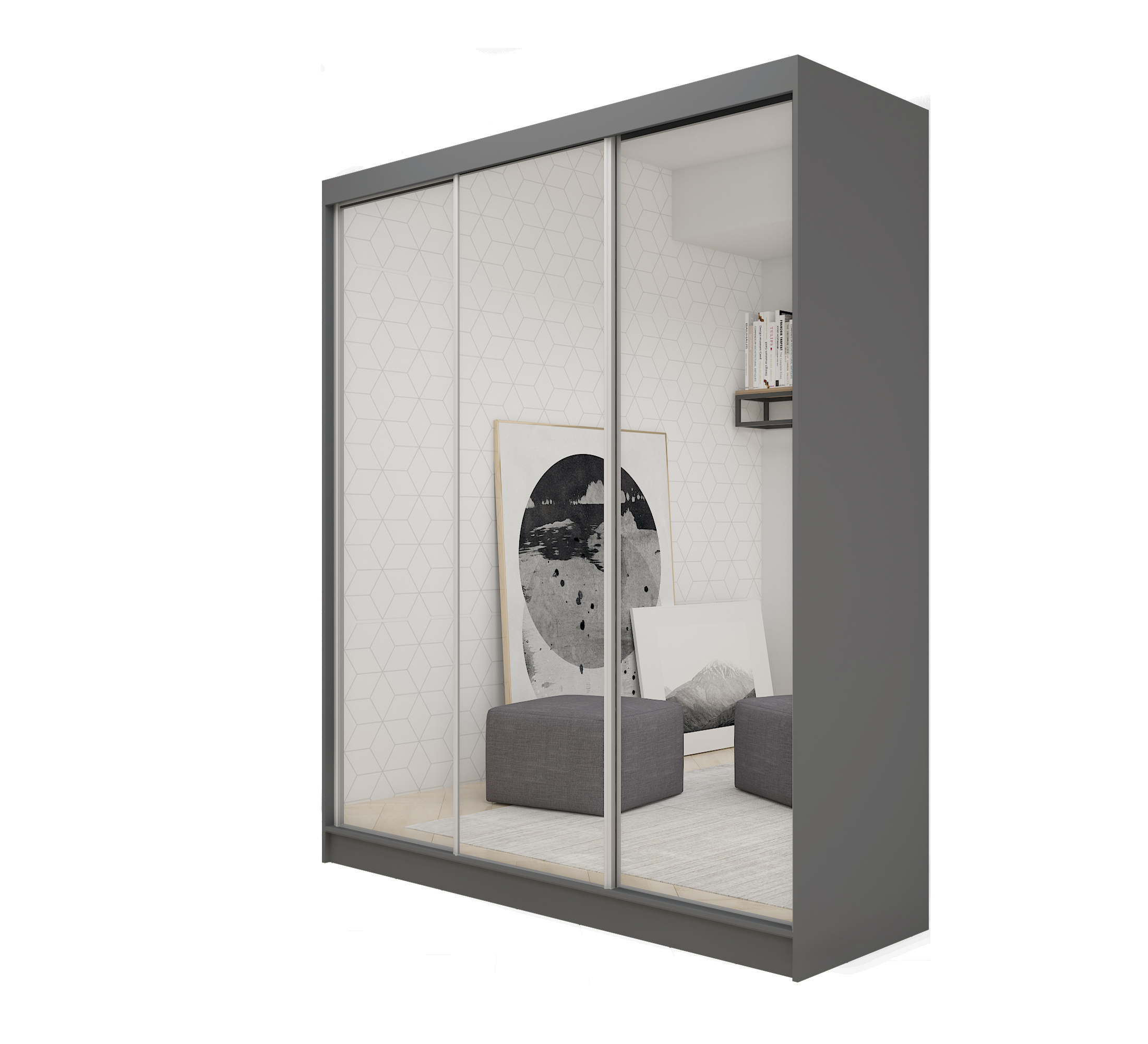 Szafa Przesuwna 180cm z Lustrem Grafit DEBRA MR