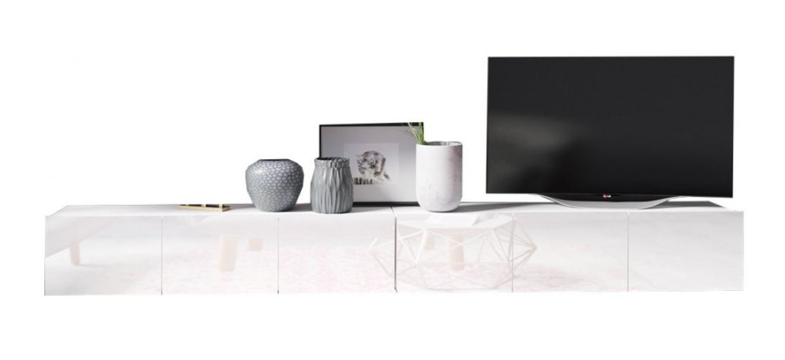 Szafka RTV 6- Drzwiowa 6D 300 cm Biały Połysk CALARI GB – 3 Kolory
