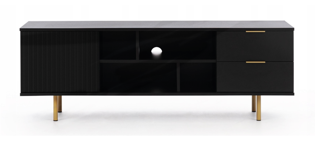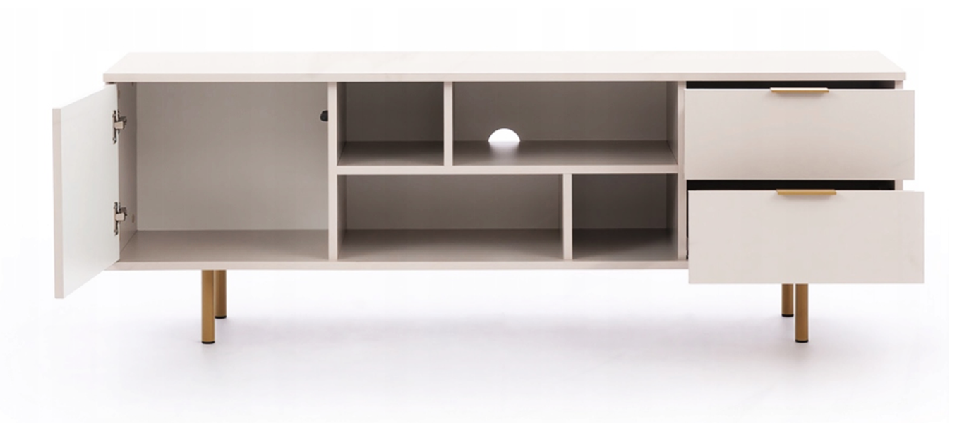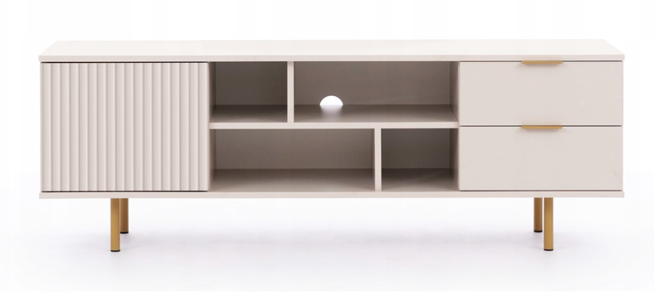 Szafka RTV Ryflowana 1- Drzwiowa z Szufladami 1D2SZ 150 cm Beżowy NUMI GB – 2 Kolory