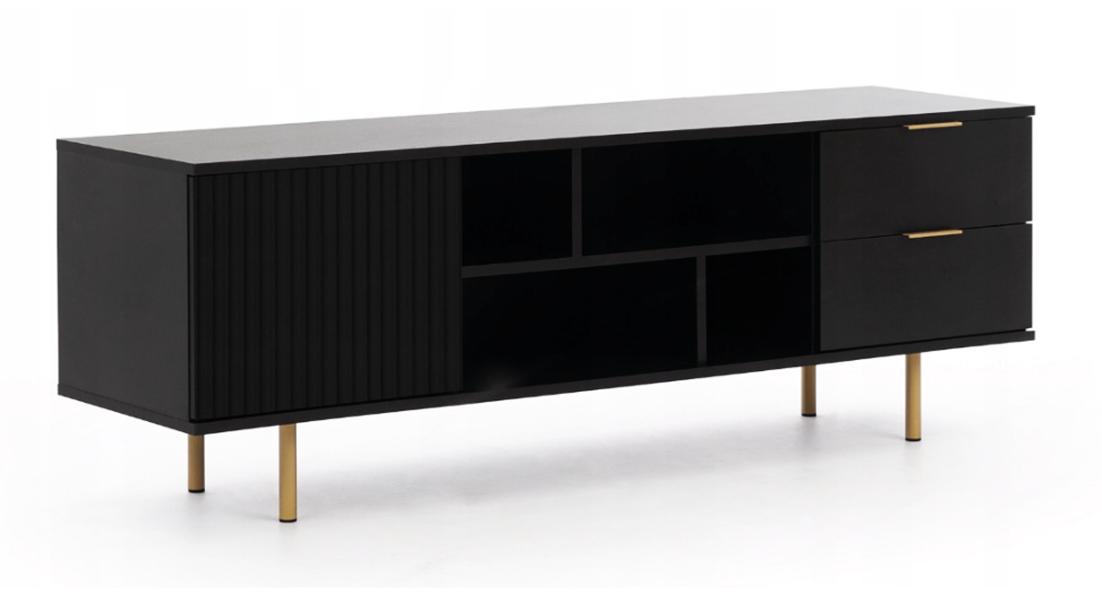 Szafka rtv o niezwykłym charakterze, emanująca duchem nowoczesności połączonej z wyjątkową elegancją. To prawdziwe arcydzieło, które zachwyci każdego miłośnika nowatorskiego designu i estetyki.
