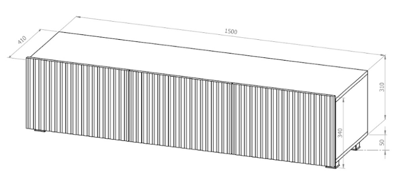 - Front: płyta MDF 16mm – ryflowana